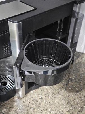 A: Thank you for your question. The appliance includes 60 oz. removable water reservoir, 12 cup glass carafe, single-serve pod holder, single-serve brew basket for ground coffee and cup rest.