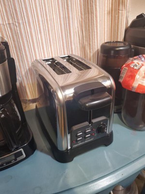 The Hamilton Beach® Classic Stainless Steel 2 Slice Toaster does everything you'd expect a toaster to do, plus a whole lot more. It has innovative Sure-Toast™ technology to ensure bread perfectly toasts on both sides, even when toasting one slice. Just put your bread in either toast slot, push down the bread lifter, and press the One Slice button. With Sure-Toast™, bread, waffles, English muffins and sandwiches made with toasted bread look as good as they taste. Whether you toast 1 or 2 slices, you always get balanced toast color and texture. Toasting smaller breads is no problem either. Toast Boost automatically lifts small breads like English muffins higher so they're easier to retrieve from the toaster. The 9 shade selector dial provides a wide range browning levels for every taste and recipe, and it easily adjusts to everyone's toasting preference. For perfect bagels, select the bagel button, which toasts the cut side and gently warms the rounded side. The defrost setting ensures optimal cook time and great performance when toasting frozen breads and waffles. Wide toasting slots easily accommodate thicker breads and bagels. Includes slide-out crumb tray for easy cleanup.