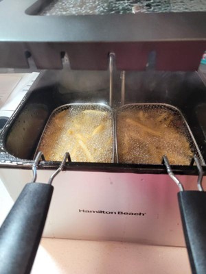Hamilton Beach 3qt Double Deep Fryer 35036: Electric Oil Fryer, 1800W, Dishwasher-Safe Parts, Cast Aluminum, Gray
