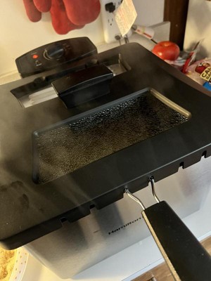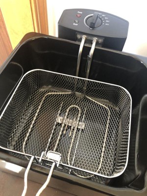- EASY CLEANUP: The enamel-coated oil tank on the electric deep fryer has an easy-pour spout for fast, mess-free draining of cooking oil to recycle or discard. Then the tank, cooking basket, and lid go right in the dishwasher for easy cleaning.