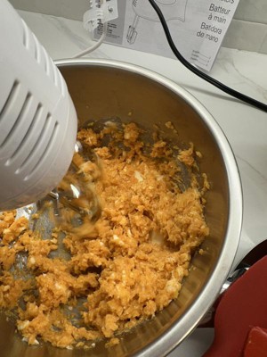 [This review was collected as part of a promotion.] This "Must Have for EVERY Kitchen", the Hamilton Beach 6 speed hand mixer is versatile, lightweight, easy to use with easy clean-up. I decided to make a sweet potato pie when I tried out the Hamilton Beach 6-speed hand mixer because the recipe required a lot of mixing. First, I had to beat the eggs until foamy. This can be long and tiresome. But with the QuickBurst™ button, it gave extra power without the eggs splattering all over the kitchen. In no time, I had my foamy eggs. I have never seen the QuickBurst™ option on other hand mixers. This is a first. I used it several times in making my pie. I especially liked this feature in creaming the butter and sugar. Another first or feature that I have never seen on other hand mixers is the Bowl Rest™. I have to admit, I was a little skeptical at first. But, when I rested the mixer on the bowl, it was fine: no tipping and no dripping on my counter top. Again, I have never seen this feature on other hand mixers. Finally, clean up was a breeze. The beaters easily ejected from the hand mixer and were put in the dishwasher making clean-up a snap. Definitely, the Hamilton Beach 6-speed hand mixer is a MUST HAVE for EVERY kitchen. My pie turned out great, too!!