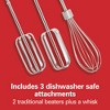 - INCLUDES 3 ATTACHMENTS: The 6 speed hand mixer includes everything you need to start mixing. It comes with 3 dishwasher safe attachments: 2 traditional beaters and a whisk.