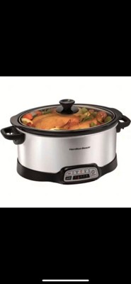 Hamilton Beach 6qt Stay or Go Slow Cooker Silver - 33262: Removable Stoneware Pot, 3 Settings, Dishwasher-Safe Parts