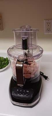 [This review was collected as part of a promotion.] I just received my Hamilton Beach Big Mouth 12-Cup Food Processor, and honestly, I feel that it’s been a really solid addition to my kitchen so far. If you’re looking for something affordable but effective, this one is worth considering. The design is simple and practical. It’s not too big, so it doesn’t dominate my counter space, which is always a plus. One of the best features is the wide feed chute—it’s a game-changer. I can toss in a whole potato or large chunks of veggies without having to spend time cutting them into tiny pieces first if I wanted to. I was surprised at how powerful it is. The 450-watt motor handles most tasks pretty easily. Here’s what I’ve noticed while using it: • Slicing and Shredding: The reversible disc works great for slicing cucumbers or shredding cheese. It’s fast and gives nice, even results. • Chopping: The S-blade is really sharp, so chopping onions, nuts, or herbs is quick and consistent. It doesn’t turn things into mush unless you overdo it, which is nice. • Pureeing: I made salsa and hummus so far, and while it’s good, the texture can be a bit chunkier than I’d like. Still, it gets the job done without too much effort. The 12-cup capacity is great, especially if you’re cooking for a family or meal prepping. That said, for liquids, you’ll want to stay under 4 cups to avoid spilling over. It’s super easy to put together and take apart. The lid locks in place securely, and all the attachments snap into place without any fuss. Cleaning is pretty straightforward, too. Most of the parts are dishwasher-safe, but I usually rinse the blades right away to keep them in good shape. The motor is pretty loud, but most chopping machines are, which might not be great if you’re trying to keep things quiet. But it really isn’t too bad! All in all, this food processor has been a really solid workhorse in my kitchen. It’s versatile, reliable, and does pretty much everything I need it to do. Sure, it’s not the fanciest model out there, but for the price, it’s hard to beat. If you’re looking for something affordable that gets the job done without a lot of fuss, I’d definitely recommend it!