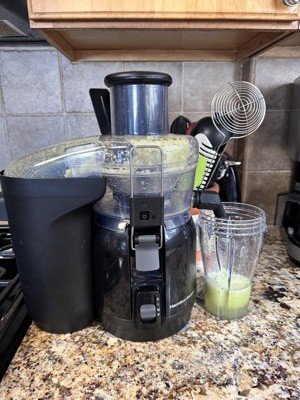 [This review was collected as part of a promotion.] Let me begin by saying I don’t like greens or apple juice. Never have. But my body needs them. When I received this juicer/blender to review, I did not have much hope that this product would really make a difference in my life. But it did! Assembly and operation were easy, and the instruction booklet included recipes to get me started. Now, I’m making up my own recipes. For one of my favorites, I simply added spinach mixed with spring greens to the wide-mouth chute and washed and cut apples to make completely smooth, sweet green juice that did not taste like greens or apples. Yes, there was pulp left that I can add to my garden’s compost bin ir use in other recipes for the fiber, but cleanup was super easy. All parts except the motor assembly are dishwasher safe (also easily washed by hand). I’m thrilled that I can drink healthy food without the “healthy taste.” The blender option is a bonus! I like to use that for quick smoothies. The machine has stabilizing suction feet. And I don’t have to worry about additives like sugar or preservatives. The ingredients are up to me.