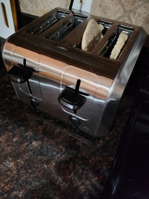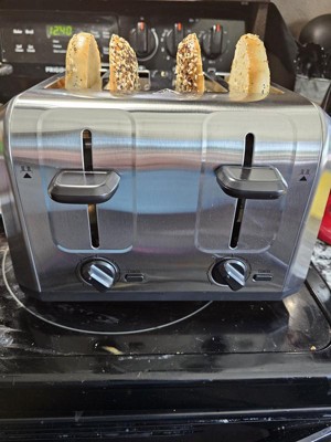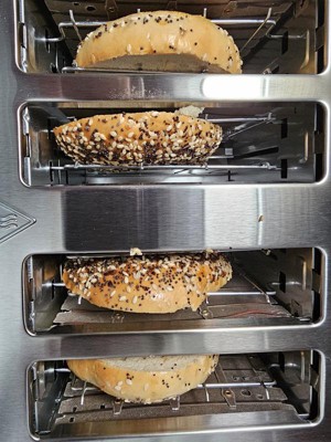 [This review was collected as part of a promotion.] The 4-slice stainless steel toaster has a sleek design and is easy to clean. Larger items such as bagels and English Muffins fit in the larger slots. It also has an "easy lift" feature to remove items from the slots to prevent using your hands to directly remove items. This toaster is also good for larger families so that you can toast more items at once.