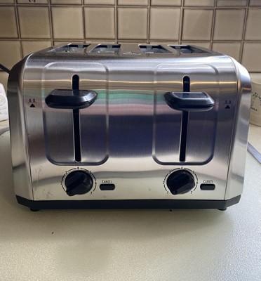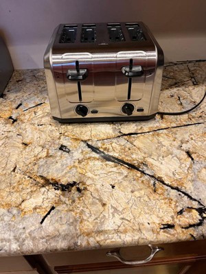[This review was collected as part of a promotion.] Hamilton beach brushed stainless steel 4-slice toaster is beautiful. i love that it has 4 slots and i can toast multiple items at the same time i have a large family and it saves me alot of time when i can toast everything at the same time instead of having to wait on something to toast two at a time.