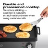 - DURABLE & PRESEASONED COOKTOP: The flat-top grill surface is made of durable cast iron that's preseasoned to reduce sticking and save you time and effort. Cast iron is a hard, naturally scratch-resistant surface even when using metal utensils.