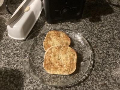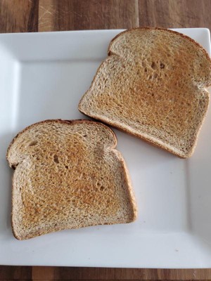 [This review was collected as part of a promotion.] This is a good, solid toaster designed for someone who wants a no-frills device without a lot of fine electronics inside. Which, is exactly me! Even in its retail packaging, it arrives in a box with plenty of cardboard supports, wrapped in plastic with the manual easy to find on the top! As the warning symbol embossed on the top of the machine indicates, the top of this toaster does get hot, but the sides stay cool, which is a MUST for me! I'm so happy about that!!! The bottom has a metal flap that opens and allows one to easily remove crumbs from the machine, in a much more simple and straightfoward way than typical crumb trays provide. I usually just take the unplugged machine and hold it over the sink while I lightly shake out the crumbs. My method is not the most elegant solution but, thanks to the easy design of the toaster, it IS a thorough way to clean it! Even though this toaster is listed as compact, it does take the large slices of the bread I make in my bread maker. I was a little bit worried about that because, despite liking a small toaster, what I normally eat is the bread I make myself rather than the much smaller, commercial loves purchased from the store. Happily, my worries were for nothing! So far I've been making toast not only just for buttered toast, but also for peanut butter and jelly sandwiches, egg sandwiches, grilled cheese, mini toast pizzas, cheese toast, garlic bread, and croutons for salad. Hopefully, as the season turns more toward fall, I'll be adding pumpkin bread to this list! I have included pictures of the bread I made with my review, showing the darkness of each of three toast settings, as well as a piece of bread that is completely untoasted. Now, while a setting of 3 does not appear toasted, it -feels- toasted. The bread is nicely crisped up on the outer edges without drying out the toast or showing visible toasting marks. One side of the toast does get slightly more toasted than the other, but that's to be expected with a compact machine that has both toasting compartments placed so closely together. In addition to the "cancel" button there's also a "bagel" button that one must press -after- pressing the lever to start the toasting process. It appears to make the toast -much- darker, like a "turbo" button rather than a "bagel" button. If you do use this for bagels, I recommend slicing each bagel into thirds, rather than halves, before putting them in the toaster. Due to the simple versatility of the toaster, I heartily recommend it for anyone wanting toasted bread in their life. It's soooo good and easy to use even when I'm three-quarters asleep in the morning. Even if you're someone who likes fancy, smart gadgets, this is an -excellent- backup model for when all of those fancy electrical components start to fail and you're left without the wonder of warm, freshly toasted bread.