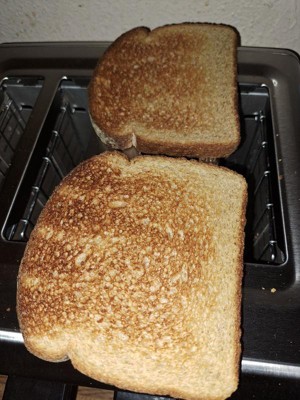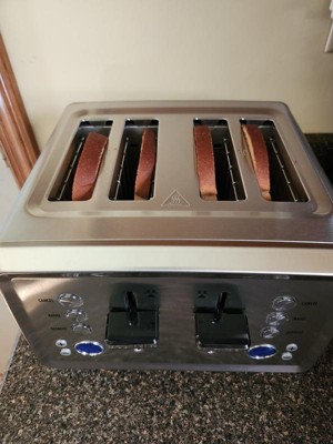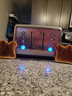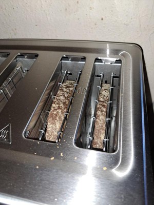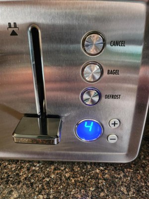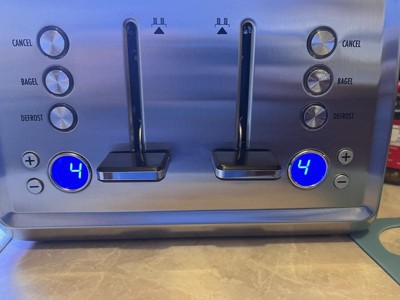 [This review was collected as part of a promotion.] Pros: - Digital shade setting of 1-7. - 4 nice wide slots for bagels. - Defrost option (works fine). - Cancel button (no more trying to force the mechanism up if you want to end the toasting. Just push the cancel button and up it pops). - There’s also a “High-Lift” feature that allows you to raise the toasted item up higher to be able to remove it easier, which is nice. - The two crumb trays in the back slide out very easily. - The stainless-steel finish goes well in my kitchen and is easy to clean. - The power cord is around 30” long. - It carries the ETL/UL/CSA safety certifications. Cons: - The levers have trouble staying down. I find myself having to push the lever down several times before it catches, increasing the force each time. It just isn’t as easy as other toasters I’ve had. I once pushed both sides down at the same time and the toaster actually flipped forwards. - Note that because it is digital, you have 7 “fixed” shade levels. I.e. unlike a dial, you can’t set it to something in the middle like 3.5. But one of the 7 shades will probably be fine once you establish the right one. The main problem is unless your desired shade is “4”, it is not retained. A couple of minutes after toasting something, (and definitely if the toaster is unplugged), the number always reverts back to “4”. So you have to always remember to check the number when toasting multiple times. - I like the looks of the blue lit circle for the cancel, bagel, and defrost buttons, but I’m not crazy about the looks of the “display bubble” for the level setting number. I also find myself having to bend down to read it as you almost have to be at eye-level of the display to see the number which is recessed. - As you can see in the pics, I found that it toasts “fairly evenly”, but not perfectly. Summary: I was a bit disappointed with this toaster. Without the short comings, the toaster would have been much better. But in the end, it does the job.