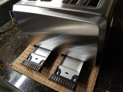 [This review was collected as part of a promotion.] This is a digital display 4 slice toaster. The slots are extra wide, which is great for bagels, Texas toast, and many others. I love that fact that this has a “toast boost” so you can lift it higher to easily remove your item. I did notice when toasting bagels, that one side just is warm and the other toasted the bagel. I never had a toaster do this function. Like most toasters, this has 2 crumble trays for easy clean up on the bottom. Great toaster!