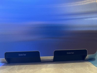 [This review was collected as part of a promotion.] This toaster is amazing. It has two pull out crumb trays in the back, a digital green to let you know which temperature your toast is cooking at. And toast evenly The stainless steel design is very sleek and modern and goes with any kitchen. Doesn't take up much space and is built to last. Buttons are pressed with ease as well as the handle to slide the toes down