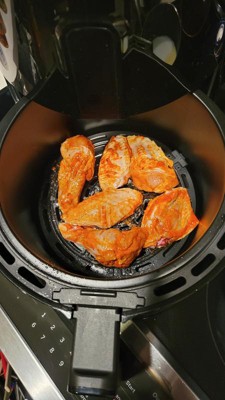 [This review was collected as part of a promotion.] Love it! I was SO excited when this air fryer arrived. The features I was most excited for: no preheating required, little to no oil to cook, and the pre-programmed times/settings for some of my fave things to cook. This air fryer delivered - it is so easy to use, and even easier to clean. My only complaints: 1. I wish it was bigger (example: it can fit enough chicken tenders for 2, or 2 slices of pizza, or a 3 baked potatoes (depending on size!)). 2. I wish the cord was automatically retractable... it does tuck neatly inside the base, but requires a little bit of maneuvering to make it stay. Overall - def worth it for the price and functionality!