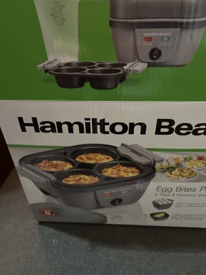 With the Hamilton Beach® Egg Bites Plus in your kitchen, you can satisfy the breakfast tastes and preferences of your whole family all week long. This incredibly versatile egg cooker lets you make eggs 6 ways. Create up to 4 fluffy egg bites, 4 poached eggs or 9 soft, medium or hard-boiled eggs. Make delicious omelets, scrambled eggs, fried eggs and more in the built-in 5.25” PFAS-free nonstick coated skillet. Hamilton Beach Egg Bites Plus is easy to use. To cook egg bites, poached eggs or hard-boiled eggs, simply pour water into the skillet base and place either the egg bite/poaching tray or hard-boiled eggs tray filled with eggs on top. Want to make an omelet, scrambled eggs, fried eggs or brown sausage links or patties? Set aside the lid and trays to access the skillet and plug it in to quickly heat it up. Since the skillet has a PFAS-free nonstick coating, food won't stick and it easily wipes clean. For easy cleanup, the included accessories are dishwasher safe.