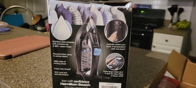 Keep your clothes looking smooth with the premium ironing performance of the Hamilton Beach® FabricIQ™ Steam Iron. It's loaded with innovative features to make ironing faster and easier than ever. On top of the handle, its intuitive FabricIQ™ touchpad lets you instantly select your fabric and temperature setting with one touch. As you iron, the durable stainless steel soleplate provides an effortless glide, and the precision tip easily reaches into tight spaces. Carefully arranged across the soleplate's surface are more than 360 steam holes, which ensure that fabrics are covered with wrinkle-releasing steam. When you need to iron a bunch of clothes without stopping or vertically steam hanging trousers or curtains, the extra-large water fill door and 350 ml water tank provide easy filling and fewer refills. The 10 foot pivoting cord gives you plenty of reach as you iron, and it's designed for both left- or right-handed ironing. Equipped with powerful steam blast, spray and vertical steam to tackle wrinkles on hanging clothes. Includes 3-way auto shutoff for peace of mind, anti-drip feature and self-cleaning function.