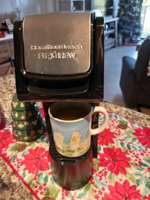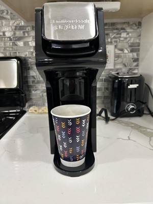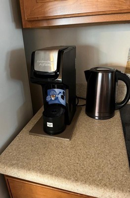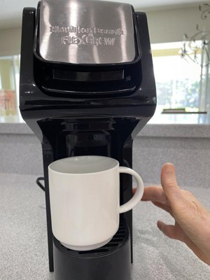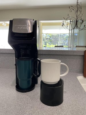 [This review was collected as part of a promotion.] I was very concerned about where I would have room on my kitchen counter for my new Hamilton Beach Flex-Brew Single Serve Coffee Maker. The photo shows it sitting underneath my cabinet, next to the toaster. I also show how a 24 ounce coffee cup and a 16 ounce carry out cup appear sitting on the stand to brew. I always fill two ounces under to allow room for any add-ins. When I am ready to use it, I just pull it forward. The product information pamphlet must be read ahead of using the brewer. I love the simplicity of use. I can understand the importance of running a clean water rinse after brewing a hot chocolate/cocoa drink. Not only will it clean the machine, it won’t leave an off flavor to your coffee or tea . I clean the ground coffee filter after each use also. I highly recommend this single serve brew machine as convenient and space saver. Clean sleek, smart appearance.