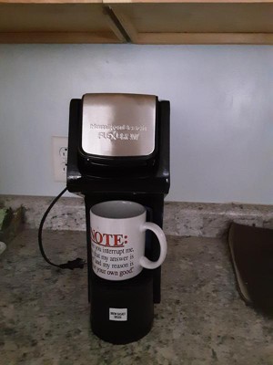 [This review was collected as part of a promotion.] If you live alone this coffeemaker might work for you. I don't like having to add water everytime I want or my family wants a hot beverage. Takes awhile for water to heat up. I do like the brew basket for fresh ground coffee. It is easy to use. I also like that the coffee once brewed is very hot. This coffee maker is very basic and doesn't take up much counter space.