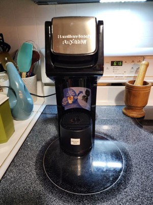 [This review was collected as part of a promotion.] Easy to use. Can brew feom pods or with the basket for mybown hround coffee. Does not take up much space on the counter. Great when I want a single cup of coffee or my grandson wants a cup of hot chocolate. I love this product. I love that the single brew basket stores neatly in the riser for the cup