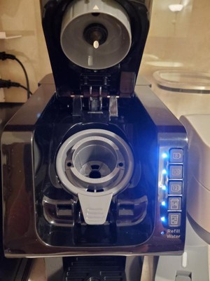 [This review was collected as part of a promotion.] I am the only coffee drinker in my house so making 1 cup is handy. It has different ounce options so if I want a big cup or a small cup I can pick. I love that it has a water reservoir. Also, a setting to show when it needs more water is added. So I don't have to add water daily. I love that it comes with a single-serve pod holder. So I don't have to use just the K-cups from the store. It doesn't take long to make a cup of coffee. It doesn't take long for water to heat up. It is almost like it is hot water on demand. Over all i love this coffee maker. It is a slim fit. So it doesn't take up much room on the counter.