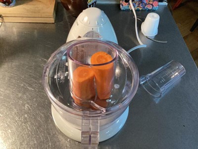 [This review was collected as part of a promotion.] Whenever I have a small chopping, slicing or shredding job, I don’t want a huge food processor that will later be a hassle to clean. That is why I love that this food processor is small and dishwasher safe, making cleaning and storing a breeze. All of the attachments fit right inside the bowl, so it easy to store in a cabinet or even on the counter. In addition, the stainless steel blades cut a wide variety of food effortlessly, which has been useful when shredding carrots for my salads and crushing graham crackers for pie crusts.