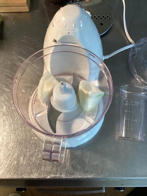 [This review was collected as part of a promotion.] This is the first time electric food processor for me! I used it to chop up homemade dog food and it did not disappoint. It took the turkey roll, green beans, and eggs and mixed and chopped them into perfection. It’s easy to use for the most part, putting it together was a breeze, I’ve only used the chopping blade so not sure how well the grater works. Chopping and pulsing worked great. I did have a hard time getting the bowl off the base, I suppose that will take some getting use to. Overall a quality product and I will use this frequently for chopping up meat for the dogs!