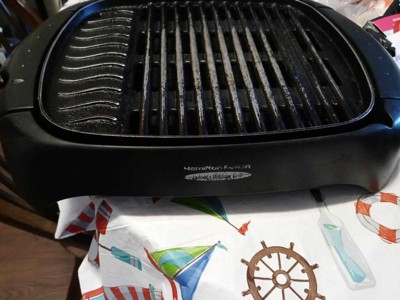 [This review was collected as part of a promotion.] I was very pleased when I added this new addition to my collection of Hamilton Beach cooking appliances. So far I have done boneless chicken breasts and burgers and had very good results. I even grilled onions on it to go with the burgers. I like the grill marks that show on the meat and the grilled taste that you get even though it's done indoors. And that's the best thing about it. It's done indoors! No lighting the outdoor grill, dealing with the weather, and carrying all the fixins out and back inside. It's all done right there on the kitchen counter with no mess at all. The clean up was very quick and fairly easy.