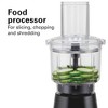 - FOOD PROCESSOR - BLENDER: The food processor attachment replaces your stand-alone food processor. In addition to chopping, it includes a blade for slicing and shredding. The 3-cup BPA-free processing bowl has a built-in chute and food pusher.