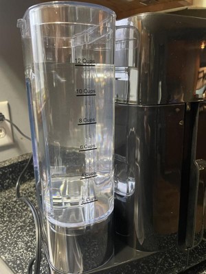 - FRESH FLAVOR FOR LONGER WITHOUT THE CARAFE: Conveniently dispense fresh, delicious coffee into cups and travel mugs up to 7" tall with the press of the lever. This 12 cup coffee maker has no carafe so there's no spilling, pouring or making a mess.