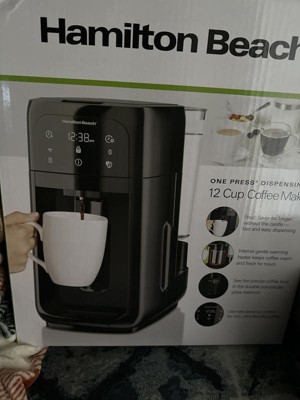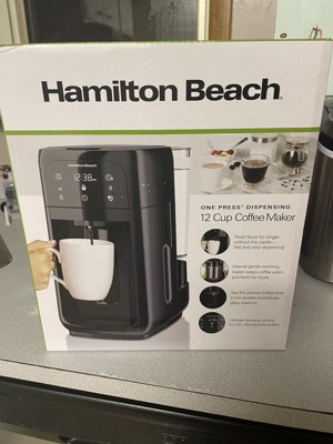 Hamilton Beach One Press Dispensing Coffee Maker 47600: 12-Cup Electric Brew Station, Black, Permanent Filter, 1050W