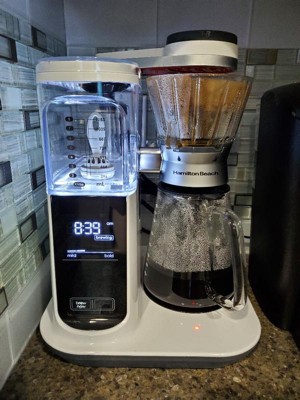 [This review was collected as part of a promotion.] As a person that has owned many Coffee makers over the years, I am absolutely in love with the Hamilton Beach Hamilton Beach 8 Cup Convenient Craft Pour Over coffee maker. The coffee maker has an extremely attractive design that looks stunning in my kitchen and I love that when brewing coffee, the water reservoir lights up, going off when the brewing is finished giving a clear indication when you Coffee is ready. The touch screen controls are super easy to use and lead you through the process, I personally found it extremely intuitive. I love that once you have completed your strength selection the machine, gives you an exact weight required for your desired coffee strength, along with how much water is needed (it even has a scale that will weigh the coffee grounds as you add it). Another great feature is being able to select either hot or very hot coffee, I love my coffee super hot and this maker really provides this. The coffee maker is extremely well made and I personally think that the materials used are far superior to other coffee machines I have had in the past. The filter holder and the carafe are both made from quality glass and the machine it self is made from extremely good quality plastic. I have faith that this maker will last for a very long time. I definitely recommend this coffee maker to coffee lovers everywhere, it really is worth the higher price point, as it makes the best coffee that I have ever tasted from an at home machine.