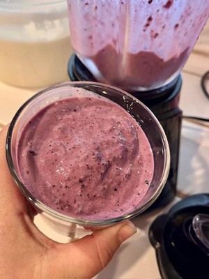 [This review was collected as part of a promotion.] This is a great blender. Light weight but mighty. I used this to blend a smoothie. I put ice, milk and fruit in it. The pour spout is an excellent addition to this product. There is button on the blender to clean the glass container. I never thought about adding water and dishwashing liquid to clean it.