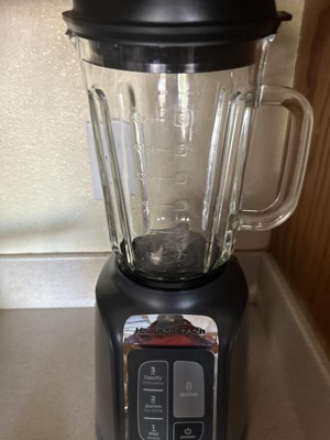 With the Hamilton Beach® PowerMax™ Professional-Performance Blender, you'll be inspired to create everything from nutritious smoothies and silky purees to icy cocktails, chunky salsas and creamy tzatziki. You'll find yourself experimenting with new food and beverage recipes all week long, and you'll enjoy restaurant-quality results every time you blend. This professional-performance blender crushes the competition because it packs 1680 watts of peak power to blend everything with ease. It's our most powerful home blender — so powerful that the 22,000 RPM motor is designed to cut through the toughest ingredients in seconds. The PowerMax Professional-Performance Blender features a top-quality, all-metal drive and stainless steel blades for robust performance, and it's backed by a 3 year limited warranty. Includes a durable 48 oz. glass jar that won’t stain or become cloudy over time and an intuitive touchpad with 3 speeds and pulse. For mess-free pouring, the leak-resistant lid has an easy-pour spout. The jar and lid are dishwasher safe for easy cleanup.