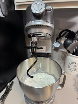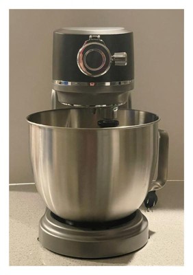 [This review was collected as part of a promotion.] I love the sleek look and design of this mixer. There is little suction cups on the bottom to adhere to the counter to stay in place. I like the slow release mechanism to raise and lower the mixer. The bowl is standard size but this mixer works well and mixes everything together seamlessly. You can also fit attachments from comparable brands which is a bonus. Would definitely recommend