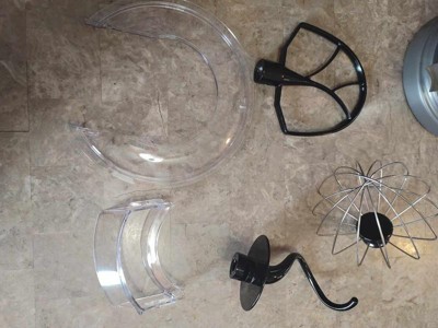 - FLAT BEATER, WHISK AND SPIRAL DOUGH HOOK INCLUDED: Versatile kitchen stand mixer attachments take you from mixing cookie dough and cake batter to whipping cream and kneading pizza dough. The convenient splash/pour shield helps prevent splatters.