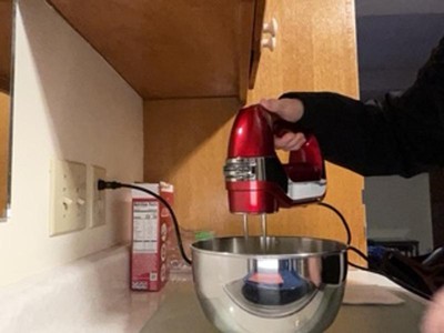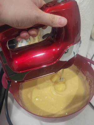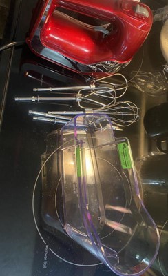 [This review was collected as part of a promotion.] Nice mixer. I love the color red, matched my kitchen. Light weight and easy to use. Comes with 5 easy to change attachments. I like the storage case that comes with it. Easy to store the attachments and keep everything together. It’s easy to store but requires a little elbow grease to get the storage case off. Nice kitchen tool to have.