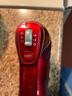 [This review was collected as part of a promotion.] I really like this hand mixer! The Hamilton Beach Professional 5 Speed Hand Mixer did not disappoint. First of all, I liked the appearance of it when I unboxed it--the red color was so much fun! And when I picked it up, I was impressed by the weight of it--it has weight to it, but not too heavy. It feels sturdy in your hand and the weight gives you control as your mixing. It came with a nice instruction booklet that clearly outlined the parts of the mixer in a helpful diagram and also outlined the 5 mixer speeds: stirring, mixing, beating, creaming, and whipping. There's also a 'burst button' that can be pressed during any setting for a burst of power. The mixer came with 2 beaters, 2 dough hooks, and a whisk. Also included was a clear storage container that the accesories sit down in and the mixer slides/clicks into place on top for storage when you're not using it. The first time I used this hand mixer was to beat cheesecake batter for a dessert recipe. It went very well! I mixed for 1 minute on low speed and 3 minutes on medium speed as instructed. This mixer worked very well and my batter was thick and fluffy as it should be. While using it, I especially liked the weight of the mixer (I felt in control) and the sound was suprising: This mixer was not loud and screechy as some mixers I've heard in the past have been. This mixer almost purred like a big cat! I thought, "Wow!" Cleanup was easy--I didn't have too much splatter on the mixer and just wiped it with a wet cloth and rinsed and placed the beaters in the dishwasher. Overall, I found this to be a fantastic hand mixer!