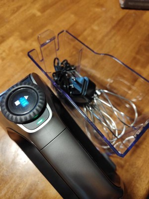[This review was collected as part of a promotion.] I find this interesting that there is a case at the bottom for storing. Never saw that before, but I like it! Also, like: recharges quickly, it has a slow start so it doesn't splash all over, it tells you the level of the battery, which I guess will last up to an hour, it has a number of speeds. I like that there isn't a cord in the way.