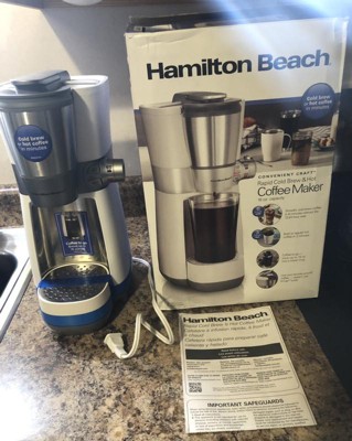 [This review was collected as part of a promotion.] I have been using this Hamilton Beach Convenient Craft Rapid Cold Brew and Hot Coffee maker for over a month now and I really like it. This coffee maker is smaller than a traditional coffeemaker and is designed for single servings and makes up to 16 oz of coffee in one brew cycle. This is a great option for those of us who don't need a full pot of coffee. The coffeemaker is a little more complicated to use than others I have used in the past, but it isn't something that keeps me from enjoying the machine. To use this coffee maker you first fill up the reservoir with water in the back. The brew basket is located in a small silver compartment, and you add your coffee grounds in here. Then you replace the lid and twist it, and this is the hardest part for me because you have to line up the notches just right on the cup or it will not fit back in the whole coffee machine. Sometimes it takes a few tries and it can be an inconvenience in the mornings and I wish this feature was changed but it's not bad enough to make me stop using this. Another amazing perk about this coffeemaker is that it uses a traditional brew basket with regular coffee grounds instead of specialty type pods so it makes using this machine a breeze and much more affordable than other options on the market. The hot coffee function is the one that gets used most often in my house, and it brews in just a few short minutes. Overall I really do enjoy this coffeemaker and in pleased to own it. I would recommend this product.