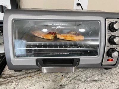 With 4 settings and a spacious interior, the Hamilton Beach Easy Reach Toaster Oven can accommodate the foods your family makes most: after-school snacks, toast, frozen pizzas or homemade meals.