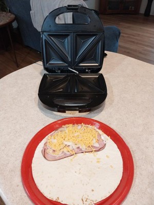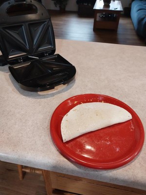 [This review was collected as part of a promotion.] My wife makes a low carb Quesadillas for lunch daily. Before the Sandwich Maker she had to preheat the oven to 350 degrees (10 Minutes) and bake for 13 minutes flipping once, a total of 23 minutes. The vegetables were usually never done right and she made a mess eating it. Then she still had to wash the pans. With the Sandwich Maker it almost takes longer to make the Quesadillas then cooking it. She heats up the Sandwich Maker 1 minute and cook the Quesadillas in 2 1/2 minutes. The veggies always turn out perfect and sealed shut and easy and no mess to eat. If she's in a hurry, she grabs a paper towel and eats it in the car with no mess. Also, the cleanup is quick and easy she just wipes it out with a paper towel.