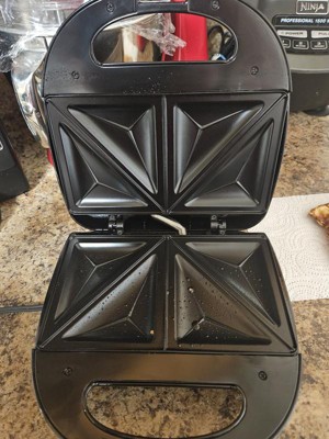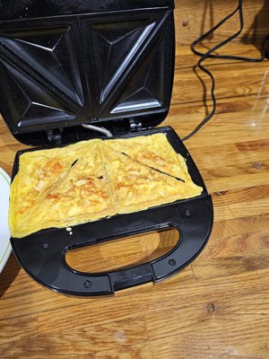 [This review was collected as part of a promotion.] Me and my children love this it works great for making any kind of sandwich. It cooks it quickly and fast. I love that it fits on the counter well. My children love that it is triangular shape and that when done they can cut sandwich easily. The color of the maker is a great color it matches anything. I would recommend this anyone