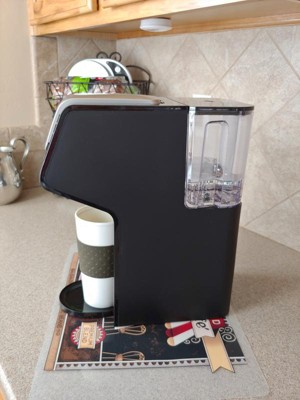 - BREW 6 SERVINGS WITHOUT REFILLING THE REMOVABLE RESERVOIR. Brew a cup of coffee without stopping to pour water into this single cup coffee maker. The removable 50 oz. water reservoir saves you time because it needs fewer refills.