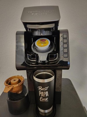 [This review was collected as part of a promotion.] This is my second FlexBrew product from Hamilton Beach. I also own the 3 in 1 Flex Brew Coffee Maker which allows me to also brew the carafe size (pot size) batch of coffee for when I am entertaining. I have already given the 3 in 1 Flex Brew a glowing review and it is right at home in my kitchen. I wanted something for my office so that I don't have to go to the kitchen every time while I am working, so I got the FlexBrew Single-Serve Coffee Maker and it is right at home in my office. I like using my own fresh ground coffee for that full-brewed taste, but when I don't feel like measuring grinds into the small brew basket, I enjoy the convenience of dropping in a so called Kcup or Pod and snapping down the lid. I also like the that the water reservoir on the back of the brewer is large enough to make several of my large cups of coffee before refilling it. I can quickly refill it by pouring in a couple of bottled waters. Furthermore, I like the simple controls on the front. I always like to press the BOLD button first for that extra umph (strength) and then press the Size button anywhere from 8 to 14 ounces. I make a large tumbler of cafe au lait with my hot milk (microwave) and my sugar already in the cup, press the 12 ounce button, and it drips in the rich coffee and chicory. In less than a minute, a simple stir and I am enjoying my coffee without getting out of my desk chair. Did I mention that the size of the machine is so incredibly small that it takes up very little room whether you put it in your office or use it as your main machine in the kitchen. You will always be pleased with the taste of your favorite brew from cup to cup, whether ground or pod.