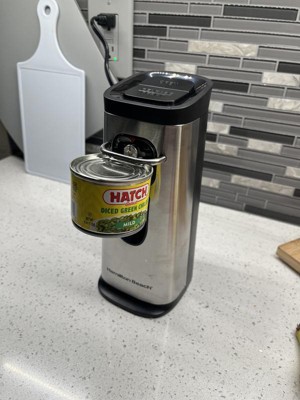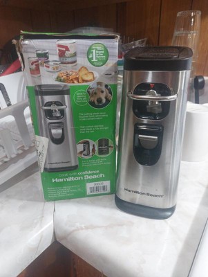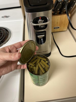 - EASILY OPEN CANS WITH ONE HAND: Once the Hamilton Beach can opener starts cutting, it opens and holds the can in place until the release button is pressed.