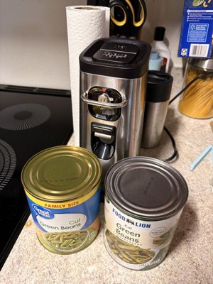 [This review was collected as part of a promotion.] This is an awesome electric can opener! It is simple to operate and is extremely strong since it holds the weight of the can until you are ready to release it. We open cans on a daily basis, so to have this plugged in sitting on the counter is definitely easier than dealing with the old-school handheld manual one. It even comes with an extra bonus knife sharpener on the back of the unit that is very handy.