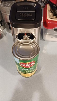 [This review was collected as part of a promotion.] I was surprised by how much time is saved with an electric can opener. I hadn't ever really thought about it but once I got this one I was surprised by how much I used it. It's super fast and easy to use. Haven't found a can yet that it has struggled with. It's fairly quiet and is small enough that you can store it on the counter or put it into a cabinet until you need it. If you are on the fence on getting one or not you should get this one just to see if they are right for you m