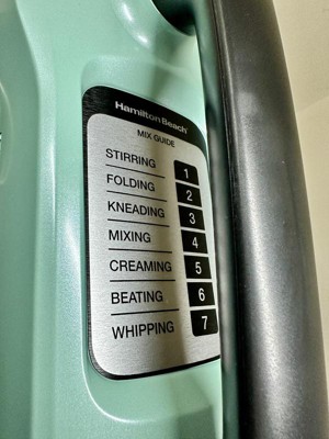 [This review was collected as part of a promotion.] Loving this Hamilton beach mixer! The light blue color is gorgeous and looks great along with my other decor in the kitchen. I found the mixer easy to use and worked great making homemade cinnamon butter! I like how it has suction on the bottom to help keep it in its spot while it is being used! I also like the built-in handle and chart that it has under the handle!