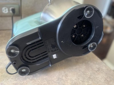 [This review was collected as part of a promotion.] I was so excited when this showed up at my door!! It’s so stinking cute!! The teal color is adorable and I love the additional heads included! Obviously it can get too heavy when the bowl is out and the head is open but once it’s set on an even flat counter it works like a dream! I love it so much and so do my kids, the splash guard is a literal life saver btw!