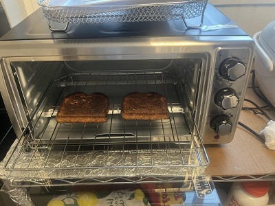 - LARGE CAPACITY PROVIDES PLENTY OF COOKING SPACE: This spacious toaster oven with air fryer will fit a 12" pizza, 6 slices of toast, a 5 lb. chicken or a 9" x 11" bake pan.