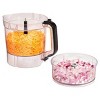 - DUAL-BOWL VERSATILITY. The 14 and 4 cup bowls are perfect for processing different amounts, and they nest together for compact storage. The sealed 14 cup bowl has a pour spout to eliminate leaks and spills when pouring ingredients.